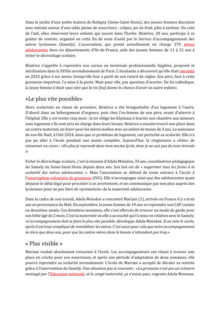 À l’occasion de cette rentrée 2025, le SAMELY dresse un bilan encourageant : 95 % des jeunes femmes accompagnées ont obtenu un diplôme en juillet dernier. Certaines ont passé leurs épreuves de rattrapage en septembre, les résultats sont en attente.
